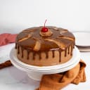 Keke de chocolate relleno de crema de avellanas batida. Decorado con un ligero fudge.